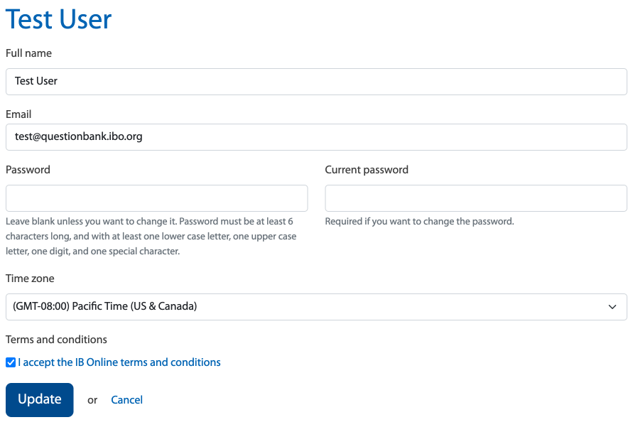 The app will ask you to accept the IB Online terms of service, and you can review your personal information. Select “Update” to proceed.
