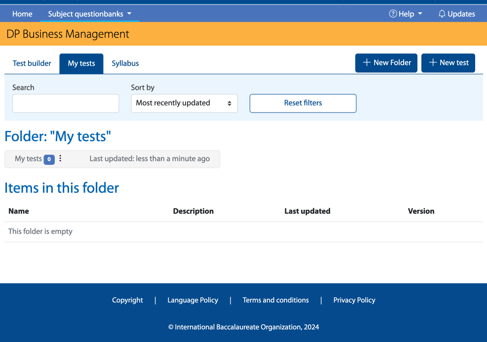 It is also possible to filter by questions authored by the IB or questions that you have created.