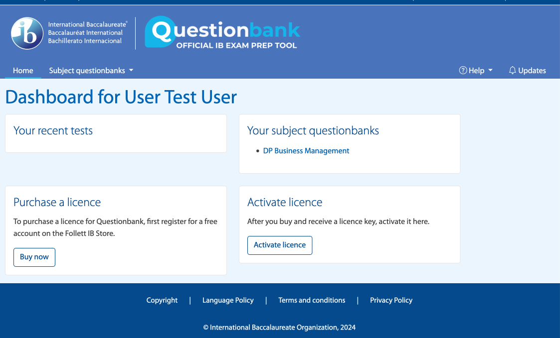 - 'Your subject questionbanks' - Here you'll find a list of you active licenses